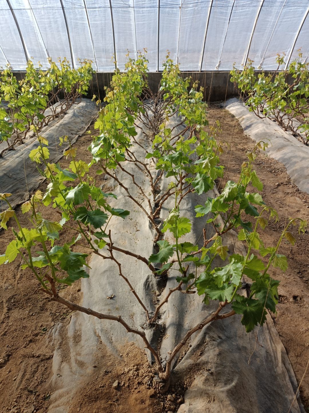 ⑴长蔓修剪。在结果母蔓下选留一条蔓作为更新母枝,更新母枝保留2-3个健康芽,结果母蔓保留6-12芽,促使其抽出的新梢当年能开花结果。到下一年冬剪时,将当年的结果母蔓全部剪除,更新母蔓上部的新梢,仍然保留6-12个芽,作为结果母蔓,下部的新梢再保留2-3个芽,作为更新母蔓。