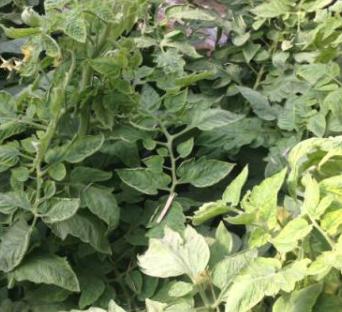 1.1 花叶型:一种是叶片上有轻微花叶和斑驳,但植株不变形、不矮化;另一种是有明显的花叶、叶片细长、扭曲畸形,植株矮小,大量落花落蕾、果小质劣,呈花脸状,对产量影响较大。