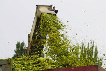 2.长期保存。青贮饲料经过压实密封,内部缺乏氧气。乳酸菌发酵分解糖类后,产生的二氧化碳进一步排除空气,分泌的乳酸使得饲料呈弱酸性(pH值3.5-4.2)能有效地抑制其他微生物生长。最后,乳酸菌也被自身产生的乳酸抑制,发酵过程停止,饲料进入稳定储藏。压实密封好的青贮饲料可以保证半年以上不发霉变质。
