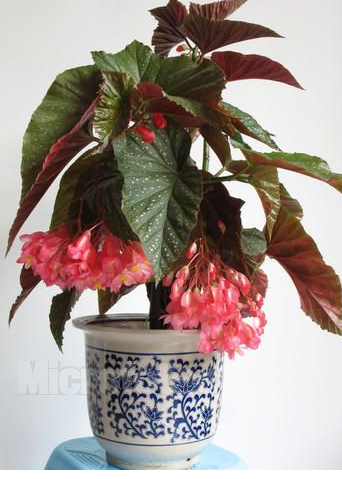半阴半阳的光照:秋海棠对光照的反映是敏感的。一般适合在晨光和散射光下生长,在强光下易造成叶片灼伤。