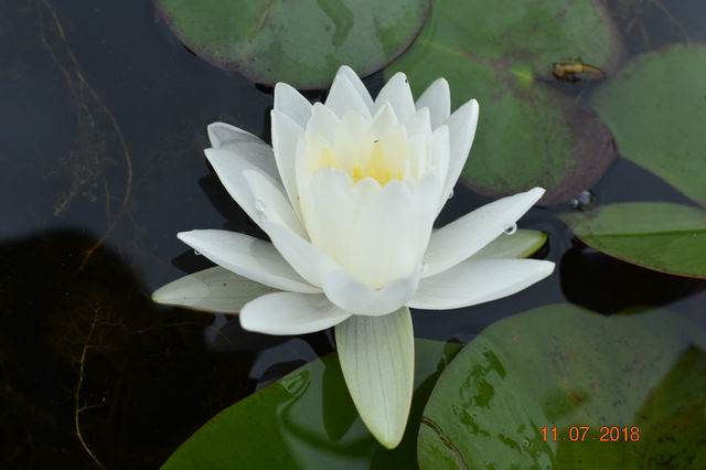 上午开放,午后闭合,花浮水开放,马利列克根茎,开花较繁密。花瓣白色。花球型,直径6~15cm,在刚开放的花朵上芳香更明显,花瓣数57~62(45~60)。花梗多为绿色,具厚绒毛。叶表绿色,新叶绿色,稍具紫铜色;叶背深紫铜色。叶卵圆形,叶柄多为绿色,具浓重的绒毛。除了在非常炎热的地区外,‘白仙子’可广泛应用于小、中或大型水池栽植。