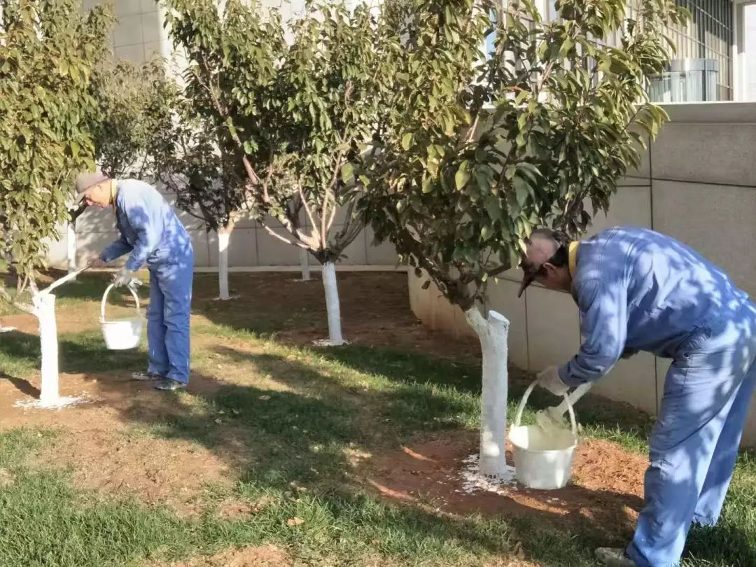 涂白不仅能有效防止冬季花木的冻害,提高花木的抗病能力,而且还能破坏病虫的越冬场所,能起到既防冻又杀虫的双重作用。特别是对在树皮里越冬的螨类、介壳虫等作用更佳。要特别注意的是生石灰一定要充分消解,否则涂到花木枝干上易造成烧伤。涂白时间因地区不同而异,一般以秋末冬初为宜。