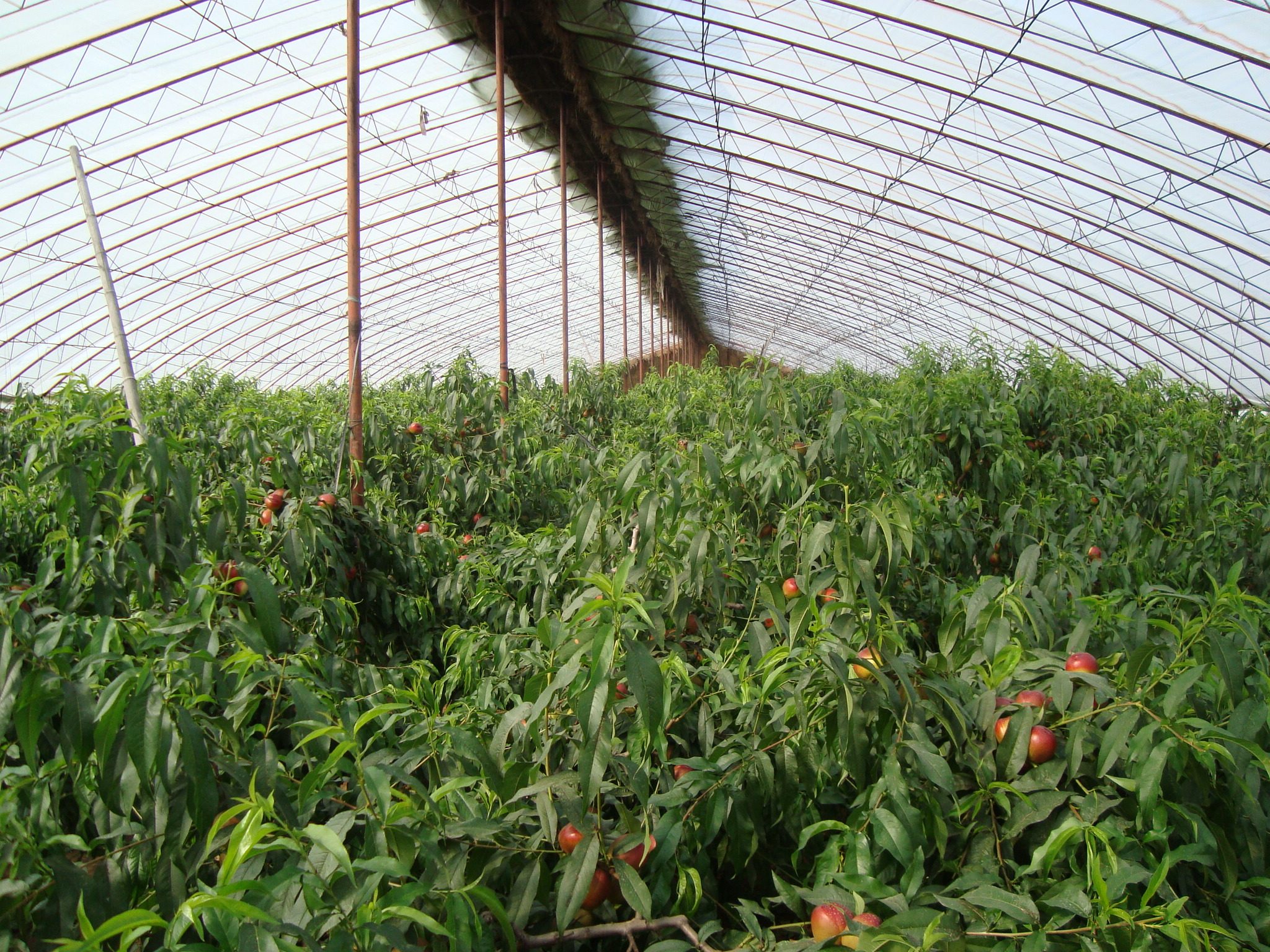 目前我国桃树栽培采用的株行距为3~4m×4~6m,设施栽培更密。成园后,株间、行间树冠交叉郁闭,通风透光极差。日本的株行距为6~8m×6~10m,设施栽培也一样,成园后,株间不交叉,行间有1~2m的通风透光带。