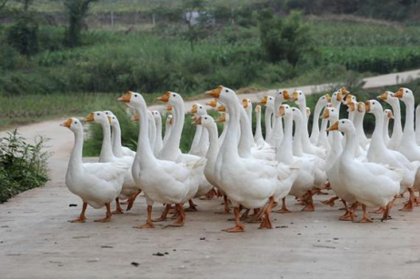 皖西白鹅是劳动人民经过长期人工选育和自然驯化而形成的优良地方品种,历史悠久。适应性强、觅食力强、耐寒耐热、抗病力强、耐粗饲、耗料少,且合群性强。早期生长速长快,肉质细嫩鲜美,特别是羽绒产量高、且绒品质优。皖西白鹅雏鹅绒毛为淡黄色,雏鹅喙为浅黄色,胫、蹼均为橘黄色。成年鹅全身羽毛洁白,部分鹅头顶部有灰毛。喙橘黄色,喙端色较淡,胫、蹼均为橘红色,爪白色。皮肤为黄色,肉色为红色。体型中等,体态高昂,颈长呈弓形,胸深广,背宽平。头顶肉瘤呈橘黄色,圆而光滑无皱褶,公鹅肉瘤大而突出,母鹅稍小。虹彩灰蓝色,约6%的鹅颌下带有咽袋。少数个体头颈后部有球形羽束,即顶心毛。公鹅颈粗长有力,母鹅颈较细短,腹部轻微下垂。早期生长发育快,90日龄体重可达4.5kg至5.0kg。饲料转化率为(3.6~4.0):1。育雏期(0至30日龄)成活率平均高达96.8%。皖西白鹅产毛量高,羽绒洁白,弹性好,蓬松质佳,尤其以绒毛的绒朵大而著称。一年可活拔毛3次至4次。平均每只鹅产毛349g,其中产绒毛量为40g至50g。目前产区每年出口羽绒占全国出口量的10%,居全国第一位。鹅皮可鞣制裘皮,柔软蓬松,保暖性好。每平方米重量仅有700克左右,是制作服装、工艺品等的好材料。公鹅6月龄性成熟,但配种多在8月龄至10月龄以后;母鹅6月龄也可开产,但当地习惯早春孵化,有利于仔鹅的生长,故人为地将开产期控制到9月龄至10月龄。公母配种比例为1:4~5,组成一个小的配种群,常年饲养在一起,任其自然交配,群众称之为"一架鹅"。母鹅就巢性强,一般年产两期蛋,每产一期,就巢一次,有就巢性的母鹅占98.9%,其中一年就巢两次的占92.1%。还有3%至4%的鹅可连产蛋30个至50个,而不抱窝,群众称为"常蛋鹅",但不符合当地自然孵化的繁殖习惯,多被淘汰。