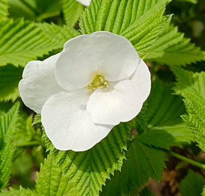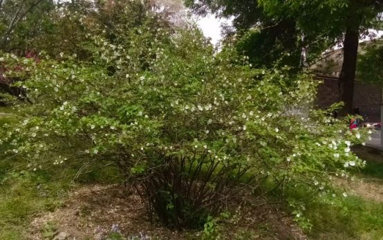 蔷薇科、鸡麻属植物,落叶灌木,高2m,庭园绿化用,根和果入药,治血虚肾亏。小枝紫褐色,嫩枝绿色,光滑。叶对生,卵形,长 4-11cm,宽3-6cm,顶端渐尖,基部圆形至微心形,边缘有尖锐重锯齿;叶柄长2-5mm,被疏柔毛;托叶膜质狭带形,被疏柔毛,不久脱落。
