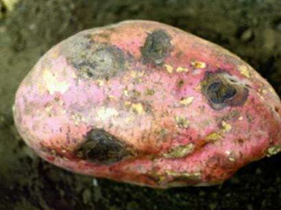 甘薯幼苗感染黑斑病,开始在基都产生梭形褐色斑点,逐渐发展成为椭圆形黑斑并凹陷,进而使幼颈部全部变黑,带病苗栽后难以成活。发病较重的幼苗,栽后1~2周叶片从基部变黄脱落,直到全株枯死。块根发生黑斑病,主要是呈现圆形稍稍下凹黑斑,逐渐扩大并向薯内深处发展,在内部沿维管束传播扩展,失去可食性。