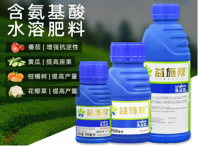 氨基酸作为构成蛋白质的最小分子存在于肥料中,有易于被作物吸收的特点;亦有提高施肥对象抗病性,改善施肥作物品质的功能。补充植物必需的氨基酸,可刺激和调节植物快速生长,促使植物生长健壮,促进对营养物质的吸收。还可增强植物的代谢功能,提高光合作用,促进植物根系发达,加快植物生长繁殖。