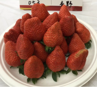 又名隋株,日本三重县农业研究所通过8个草莓品种(‘女峰’‘章姬’‘宝交早生’‘红艳美津子’‘丰香’‘三重阳光’‘枥木少女’和‘爱莓’)反复杂交选育出来的品种。果实圆锥形或长圆锥形,果皮红色,着色较均匀,果肉橙红色,果心白色,肉质细润,果实有中心空心现象。平均单果重35 g,最大可达130 g。可溶性固形物含量12 %~14 %,香味浓郁甘甜,口感细腻,品质极佳。