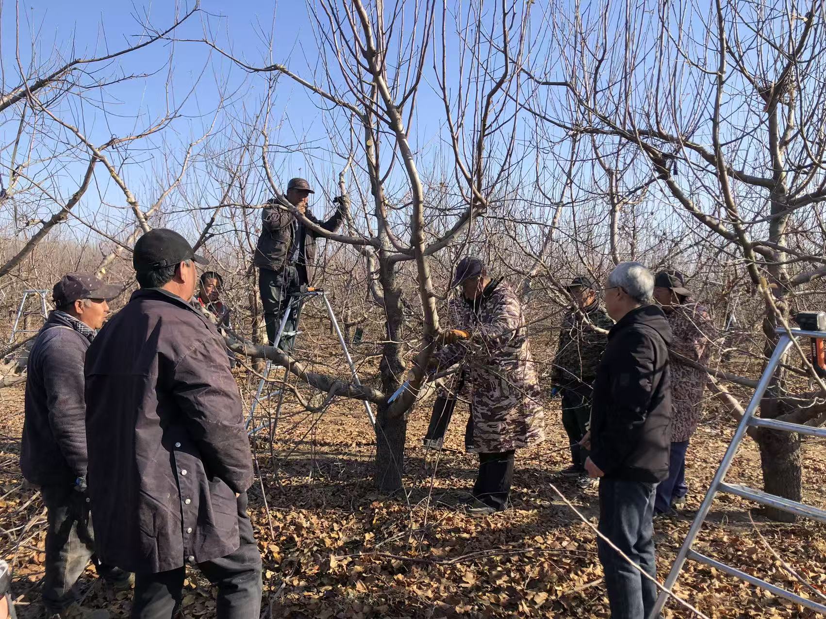 1月7日,为夯实来年果业丰产增收基础,林果研究所正高级林业工程师王俊山带领团队成员姜磊高级工程师、刘晓东农艺师等来到大城县双杠果园指导苹果树、李树等整形修剪工作。