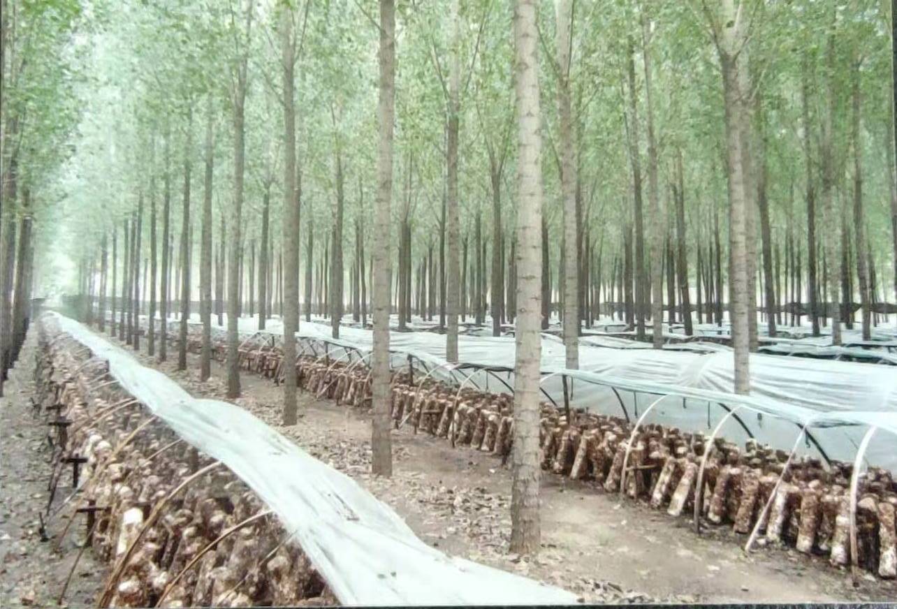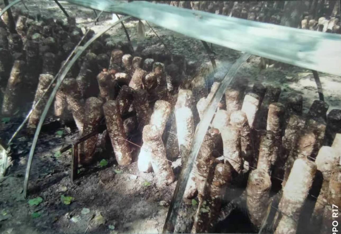 1.拱棚搭建 在林间搭建长度不大于50m、宽1.5m小拱棚,拱棚内布设6条相隔25cm、距离地面30cm铅丝作为出菇床,配套微喷供水系统,包括机井、水泵、管道系统等辅助设备。 2.春季管理 春季一般于4月中下旬,,当菌棒菌丝全部长满,将菌棒交叉斜靠于床架的铅丝上养菌和转色,每延米摆放35-40个菌棒为宜。 养菌完毕,每个菌棒均匀打孔30-50个孔,孔深0.5cm左右,进行菌棒转色。 3.夏季管理 转色完成后的菌棒,经注水刺激即可出菇。具体做法是:用注水器给菌棒注水,使菌棒单重恢复到约为1.6kg左右。一般注水后3-5天菌棒便出现菇蕾,再过4-5天,当菇体达到七成熟,菌盖的菌褶出现量达到菌盖量一半时采摘。采摘需上、下午各一次,以防香菇开伞,影响质量。一般可持续采摘7天左右,然后养菌20天,再注水等待下一潮菇出现。