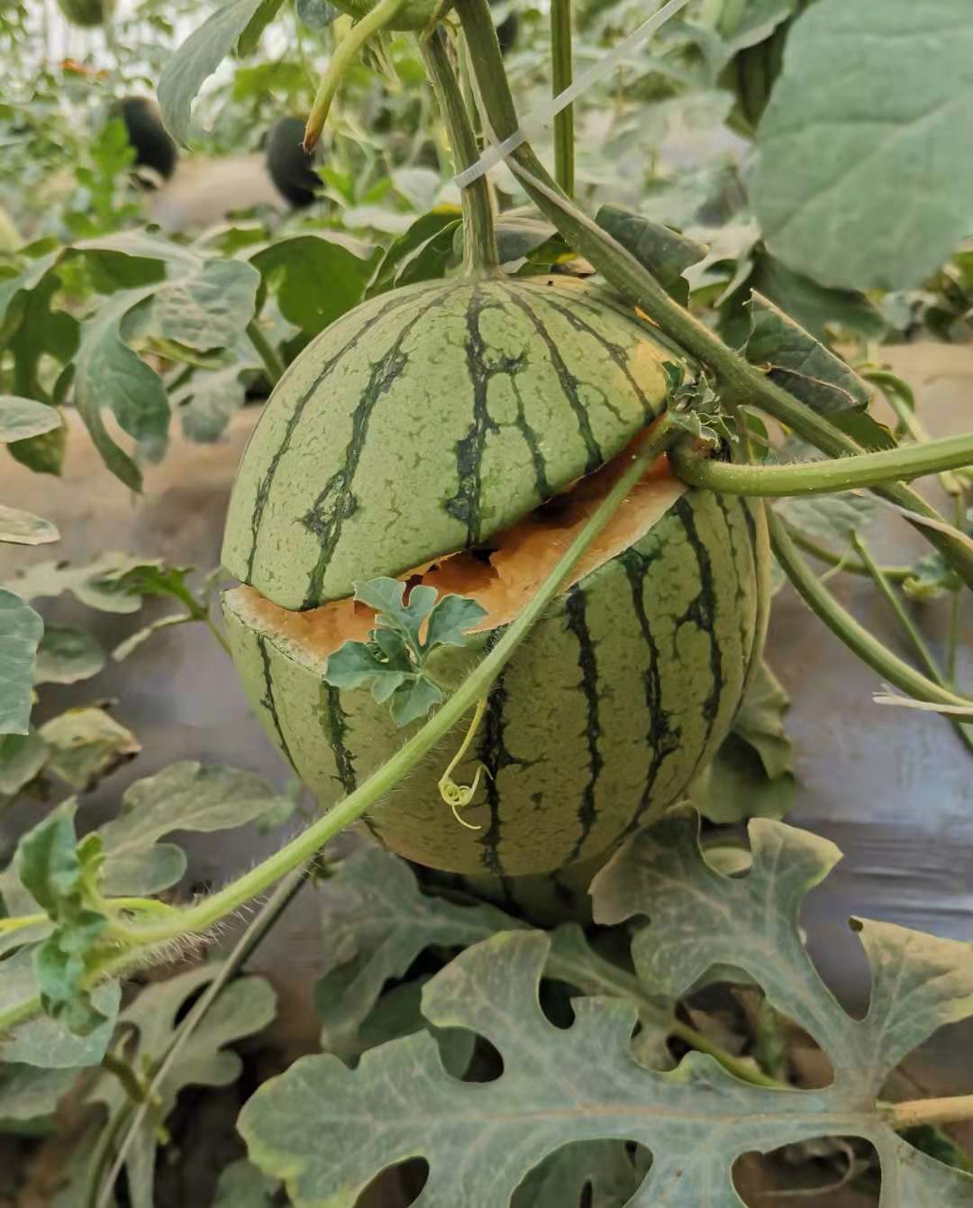 小果型西瓜品种容易裂瓜,有些品种皮薄、质脆,本身耐裂性差,生长过程中很容易发生裂瓜现象。
