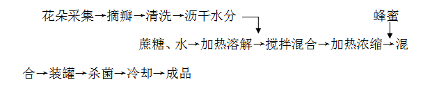 3.3糖液配制:以糖水比为5∶1的比例,配制浓糖液。方法是将水加热至沸腾后放入蔗糖,边加糖边搅拌。将糖全部加入,搅拌至蔗糖不再溶解为止。此时,为饱和糖溶液,少量未溶解的蔗糖,待进入加入花瓣和加热浓缩阶段后,再溶解利用。