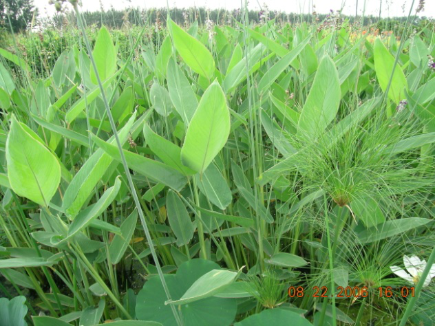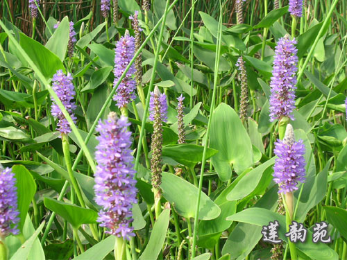 多年生挺水草本植物。根茎为徐状不定根,具多毛根。茎叶丛生,株高20-50cm。叶片箭头状或三角披针形,顶端锐尖,基部心形。叶片光滑。穗状花序顶生,密生蓝紫色小花,略带黄色斑点。花果期5-10月份。主要用于盆栽或池边点缀以供观赏。