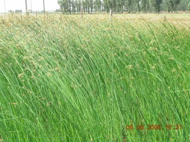 多年生草本植物,匍匐根状茎粗壮,具许多须根。秆圆柱状,最上面一个叶鞘具叶片。叶片线形。苞片1枚,为秆的延长,直立,钻状,常短于花序,极少数稍长于花序;聚散花序假侧生;小穗单生或2-3个簇生于辐射枝顶端,具多数花。小坚果倒卵形或椭圆形,双凸状,少有三稜形,长约2毫米。花果期6-9月。 株丛挺拔直立,色泽淡雅,多用于水景岸边、池旁。