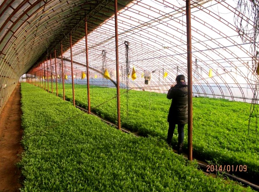 茼蒿生长适温17 ℃~20 ℃。冬季温度超过20 ℃时,主要通过屋脊放风口进行放风降温。夜间通过加盖保温被进行保温。