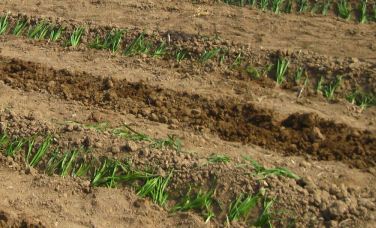 干籽直播法。播前,将畦面镇压一遍后开沟播种。沟宽10cm、沟距20cm、沟深1cm。播种时,将种子与2~3倍沙子(或过筛炉灰)混匀后,撒播于沟内,用开沟时搂起的细土将沟覆平压实。有条件的地方,也可以采用韭菜播种机精细播种。