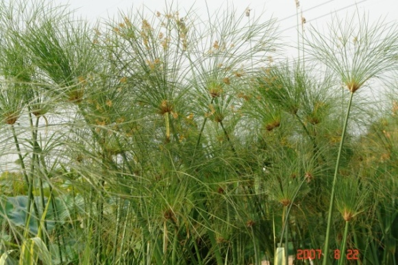 莎草科莎草属多年生挺水草本植物。具匍匐根状茎,茎秆中下部呈三棱形,秆高60~150厘米,叶针形根生。花序顶生。分布于非洲乌干达地区。中国长江以南地区广泛栽培,生长在水边湿地。叶形奇特,是良好的水生观赏植物。盆栽是制作盆景、室内装饰的材料,也可水培或作切花之用。在北方需保护性越冬。