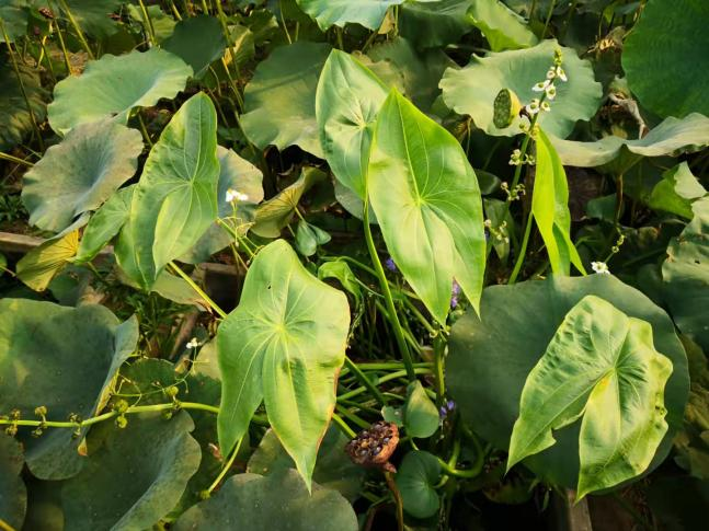 泽泻科慈姑属多年生沼生或水生草本植物。根状茎匍匐,末端多膨大呈球茎。有沉水叶、浮水叶、挺水叶。沉水叶条形或叶柄状,浮水叶长圆状披针形或卵状椭圆形,基部开裂,挺水叶箭形。花果期7~9月。原产于新疆,欧洲广泛分布。适宜与其他水生植物搭配,是过渡水体景观搭配的良好绿化材料。