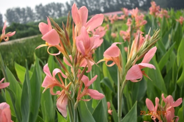 多年生湿生或陆生草本植物。根茎延长,株高1.5-2m。茎绿色。叶片披针形,长达50cm,顶端急尖,基部渐狭,绿色,被白粉,边绿白色。总状花序疏花,粉色,单生或分叉,稍高出叶上。蒴果长圆形,花期夏秋。是园林水景中一道靓丽的风景。在北方需保护性越冬。