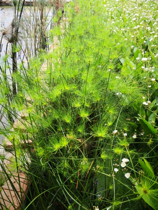 莎草科莎草属多年生挺水草本植物,散生。具匍匐根状横走茎。秆高40~90厘米,茎秆三棱形,叶针形。伞状花序顶生,顶端花谢后可形成植株。分布于非洲,生长在水边湿地。叶形奇特,是良好的观叶水生观赏植物。盆栽是制作盆景、室内装饰的材料,也可水培或作切花之用。
