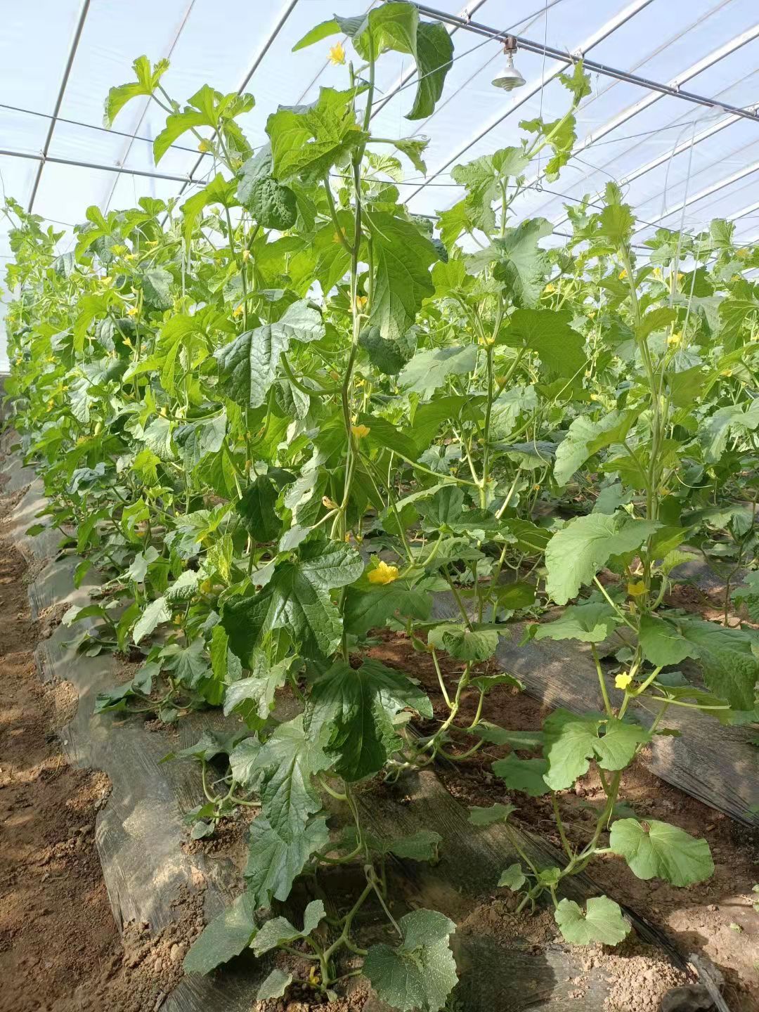 全生育期要浇4次水,第一次在幼苗定植后6~7天浇缓苗水,此时苗子较小,应浇小水(水量为垄高的二分之一);第二次在瓜秧长到50cm左右时,施肥并浇提苗水(水量为垄高的二分之一),肥料以氮磷为主,可用磷酸二铵追施,或尿素加复合肥按1:1的比例追施,每亩20kg左右;第三次当幼瓜长到核桃大小、套袋完成时,结合施肥浇坐果膨瓜水,一般每亩施磷酸二铵15~20kg,硫酸钾5~7kg,开沟深施,浇大水(水量为接近垄高为宜);第四次,立架栽培时,一茬果采收后,瓜秧养分消耗较大,要浇壮秧水(水量为接近垄高为宜)并追壮秧肥1次,每亩追三元复合肥25~30kg左右。
