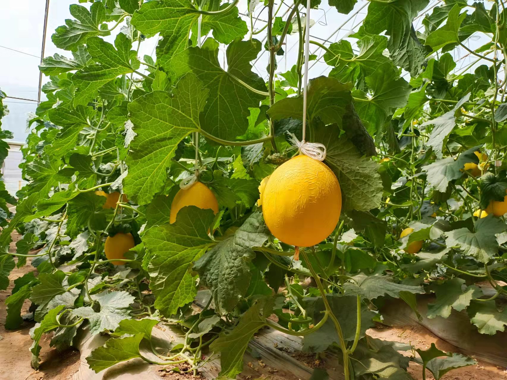 注意在配制蘸花药时,为防残花感染灰霉病,可在蘸花药中兑入适量的扑海因或施佳乐。待甜瓜长到鹅蛋大小时,可用百菌清等广谱性的杀菌剂将植株全面喷洒。