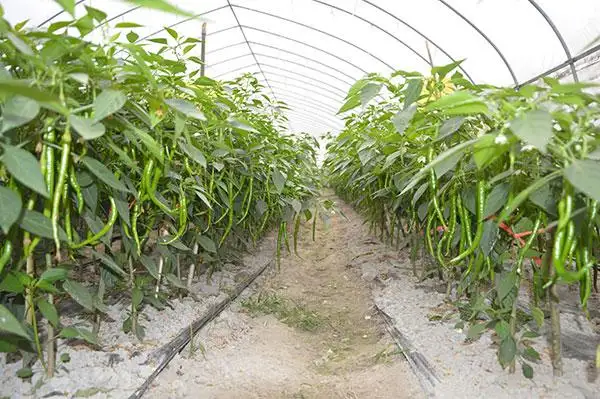 ④盖帘。整枝后将消过毒的厚厚的草帘盖在辣椒根部,再将整棵辣椒植株覆盖一层塑料薄膜 ,这样辣椒就可以在大棚中安全越冬了。