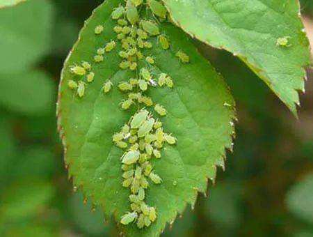 3.蚜虫:又名蜜虫。多种盆栽花卉均受蚜虫危害,例如桃、月季、榆叶梅、梅花、樱花等。蚜虫多聚集在叶片反面,以吸食叶液为生。由于其繁殖速度快,随着早春气温上升,受害叶片不能正常展叶,新梢无法生长,严重时会造成叶片脱落,影响开花。其防治方法有:发芽后展叶前,可喷洒1000倍40%乐果乳剂,以杀死幼蚜;也可先不喷药,以保护瓢虫等天敌,让其消灭蚜虫,直至因种群消长失衡,天敌无法控制蚜虫时,再考虑用药。采用这种方法时,须以人工捏死蚜虫的辅助方法配合。