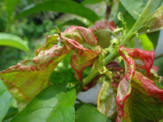 2.缩叶病:主要发生在梅、桃等蔷薇科植物的叶片上。早春初展叶时,受害叶片畸形肿胀,颜色发红。随着叶片长大,而向反面卷缩,病斑渐变成白色,并要其上有粉状物出现。由于叶片受害,嫩梢不能正常生长,乃至枯死。其防治方法有:发病初期,及时摘除初期显现病症的病叶,以减少病源传播;早春发芽前,喷洒0.3度至0.5度石硫合剂,消除在芽鳞内外及病梢上越冬的病源。