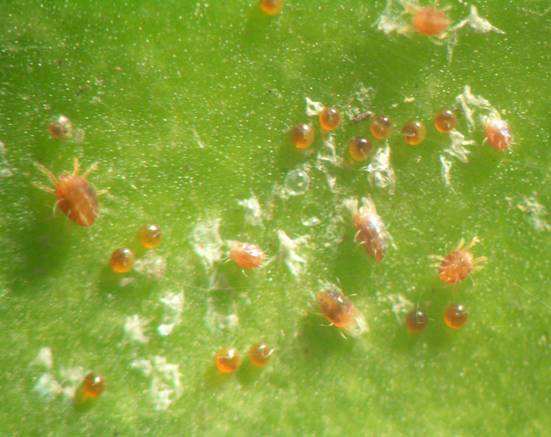 5.红蜘蛛:螨虫类。虫体小,几乎肉眼难以分辨。多呈聚生,且繁殖速度极快。易受危害的植物很多,如月季、玫瑰、花桃、樱花、杜鹃等。虫聚生于叶片背面吸食汁液,初使叶片失绿,最终造成叶片脱落、新梢枯死。其防治方法有:初发期喷洒1000倍40%乐果乳剂,或1000-1500倍40%三氯杀螨乳剂,喷杀时要周到密布。