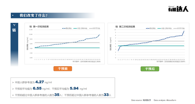 有机达人体内重金属(镉)的前后变化