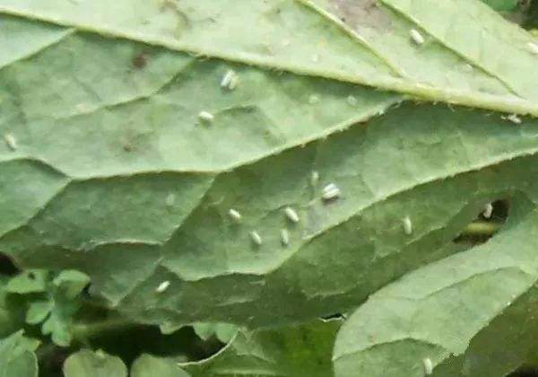 同时,白粉虱繁殖能力强,繁殖速度快,群聚危害,并分泌大量蜜液,严重污染西瓜叶片和果实,往往引起煤污病的发生,不仅妨碍光合作用,还严重影响果实的商品价值。