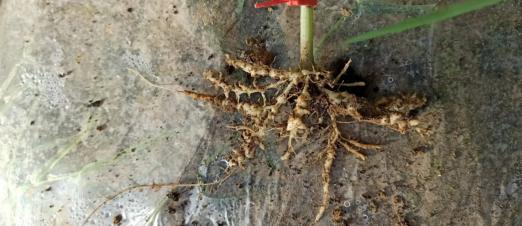 四、如果棚室内线虫发生非常严重,采用了物理防控措施还没有达到良好的效果,可以采用20%的寡糖·噻唑膦水乳剂,每亩750ml~1000ml,兑水灌根,每株灌药液400ml左右,可有效控制根结线虫的继续危害,其持效期可达2月~3月。对于已经发生根结线虫明显的植株,灌药后7天就可见有白色的新根形成。甜瓜的整个生育期,根据田块根结线虫的发生情况,进行1次或2次的防治。