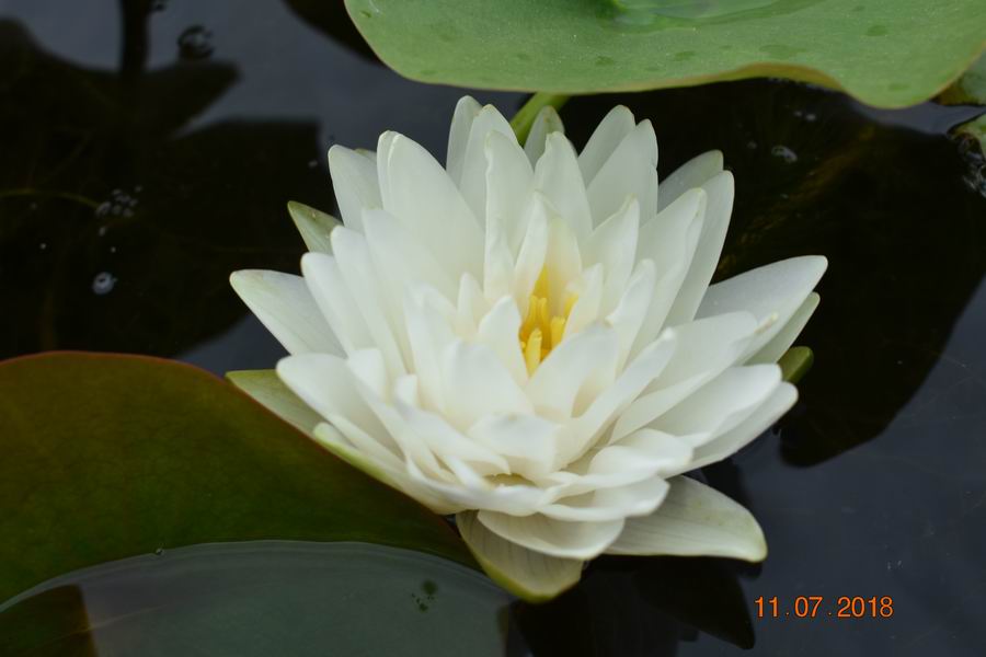 花上午开放,午后闭合,浮水。单朵花期4天,群体花期5月下旬至9月下旬。花球型,白色,芳香。叶卵圆形,叶表绿色,叶背深紫铜色。马利列克型根茎。适宜35~75㎝的水深。