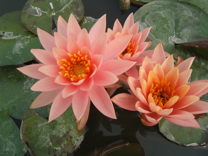 花上午开放,午后闭合,挺水。单朵花期3~4天,群体花期6月上旬至11月上旬。花低温时呈橙黄色,高温时呈橙红色;星状,浓香。叶圆形,叶表绿色,叶背边缘稍带红晕。马利列克型块茎。适宜水深45~90㎝。