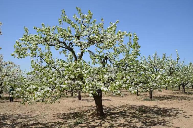 1、不等行配置 一般建园多采用这种配置方式,主栽品种所占比例较大,以3×4-5米株行距定植的梨园,栽植比例以1行授粉树、4-6行主栽品种为宜。