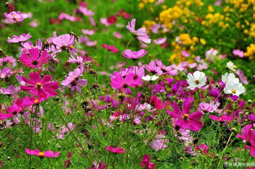 1.1波斯菊用种子繁殖。一般早春播种,5~6月开花,8~9月气候炎热,多阴雨,开花较少。秋凉后又继续开花直到霜降。如在7~8月播种,则10月份就能开花,且株矮而整齐。波斯菊的种子有自播能力,一经栽种,以后就会生出大量自播苗,若稍加保护,便可照常开花。可于4月中旬露地床播,如温度适宜约6~7天小苗即可出土。