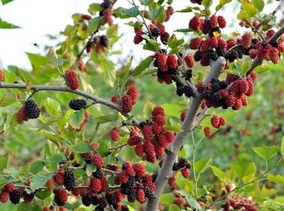 ⑵疏芽:新芽长至4-5寸时进行疏芽,每株选留2-3个发育强壮、方向合理的桑芽,养成壮枝。