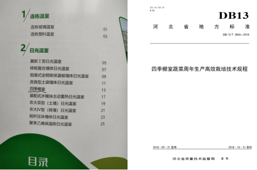 为进一步发挥四季棚室的生产性能,增加广大农民的收益,滿足城乡居民的需求,廊坊市农林科学院与河北省农林科学院经济作物研究所一起编制了河北省地方标准,规范了四季棚室周年优质高产高效栽培可供选择的三种适合茬口。包括: