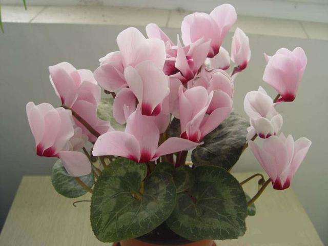 4、仙客来喜欢阳光充足的环境,水养容器要放在室内阳光充足的桌面或窗台上,不要直接放在暖气片上。室内温度以15-20摄氏度最为适宜,最高不要超过25摄氏度,最低不要低于10摄氏度℃。