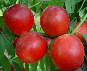 6.升温到果实采收前的病虫害防治 目前温室内油桃易发生的病虫害主要有白粉病、穿孔病、蚜虫、白蜘蛛、红蜘蛛。一般开花前喷一次1500~2000倍一遍净防治蚜虫,落花后再喷一次。对于有红蜘蛛的温室,可在落花后喷一次20%螨死净水悬浮剂1500~2000倍或20%扫螨净可湿性粉剂2000倍液;有白蜘蛛的温室要喷2000倍液的齐螨素。对于发生白粉病和穿孔病的温室,要分别喷施2000倍的粉透宁(15%)和800倍的代森锰锌(75%)。