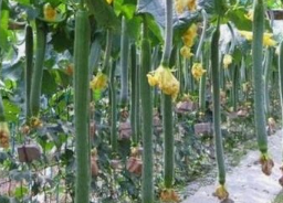 4.1距地面2—2.2米高拉钢丝;固定钢丝吊绳;绳长与钢丝高度一致。丝瓜吊绳15股尼龙绳;苗高40cm开始吊绳,吊在老叶底下。