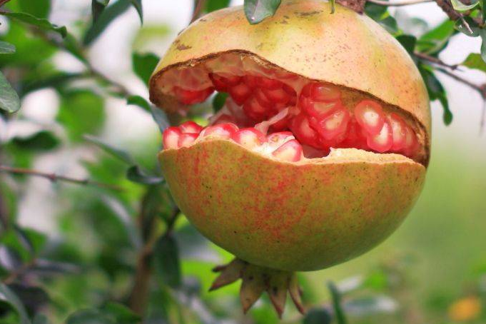 4.合理施肥:石榴树施肥以有机肥为主,配方施足磷、钾肥;果实膨大期对叶面喷施0.3%磷酸二氢钾溶液或0.5%氯化钙溶液,增强果皮韧性,防止裂果发生。