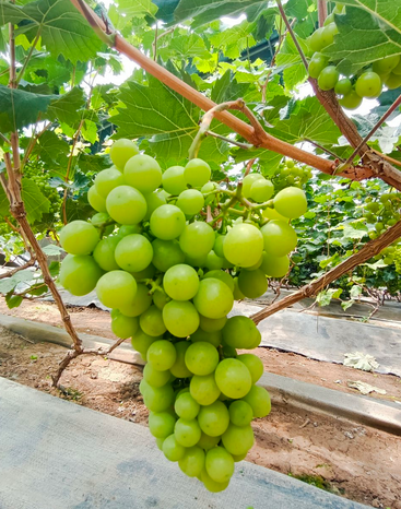 打药时机很重要,不能在有露水时打药,不能在中午太阳强光照射时和刮大风时打药。在上午7时~10时打药,宜避开露水,避开阳光直射;打药要均匀,不能过多喷药,更不能漏喷。篱架葡萄要两面都喷,棚架也要果穗两面都喷。喷雾器的喷头要选细旋片,利于喷药细而均匀。