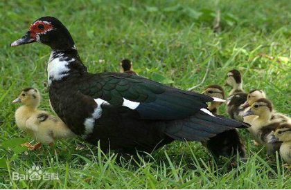 番鸭,拉丁学名Cairina moschata又名香鹑雁,麝香鸭,红嘴雁,与一般家鸭同属不同种。番鸭原产于中、南美洲热带地区。