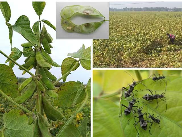 大豆“症青”是近些年危害大豆的主要病害,造成大豆大幅度减产,甚至绝收,主要症状为荚而不实、成熟时不落叶。“症青”症状主要是点蜂缘蝽引起的危害,可防可治。点蜂缘蝽是一种豆科作物典型的刺吸性害虫。首先冬季清除田园周围的杂草、枯枝落叶,压低越冬虫源基数。其次,及时铲除田边早花早实的野生植物,避免其作为早春过渡寄主,减少部分虫源。大豆见花后开始防治,使用噻虫嗪+高效氯氟氰菊酯+毒死蜱喷雾防治;也可使用10%吡虫啉可湿性粉剂2000倍液,5%高效氯氟氰菊酯微乳剂1000倍液,20%呋虫胺可溶粒剂1000倍液,或20%氰戊菊酯2000倍液单独防治。每隔7-10天喷1次,连喷2-3次。具体的防治时期是夏播一般为大豆播种后50天左右,即6月中旬播种的大豆在8月上旬开始喷药防治,6月下旬播种的大豆在在8月中旬开始喷药防治。一定要连同大豆田四周地边、沟边同时喷药防治,最好连片统防统治。有限结荚习性的大豆品种,如冀豆12等品种,开花期集中,可减少喷药次数,一般2次。亚有限结荚习性的品种,如冀豆17等品种开花期较长,需增加喷药次数。