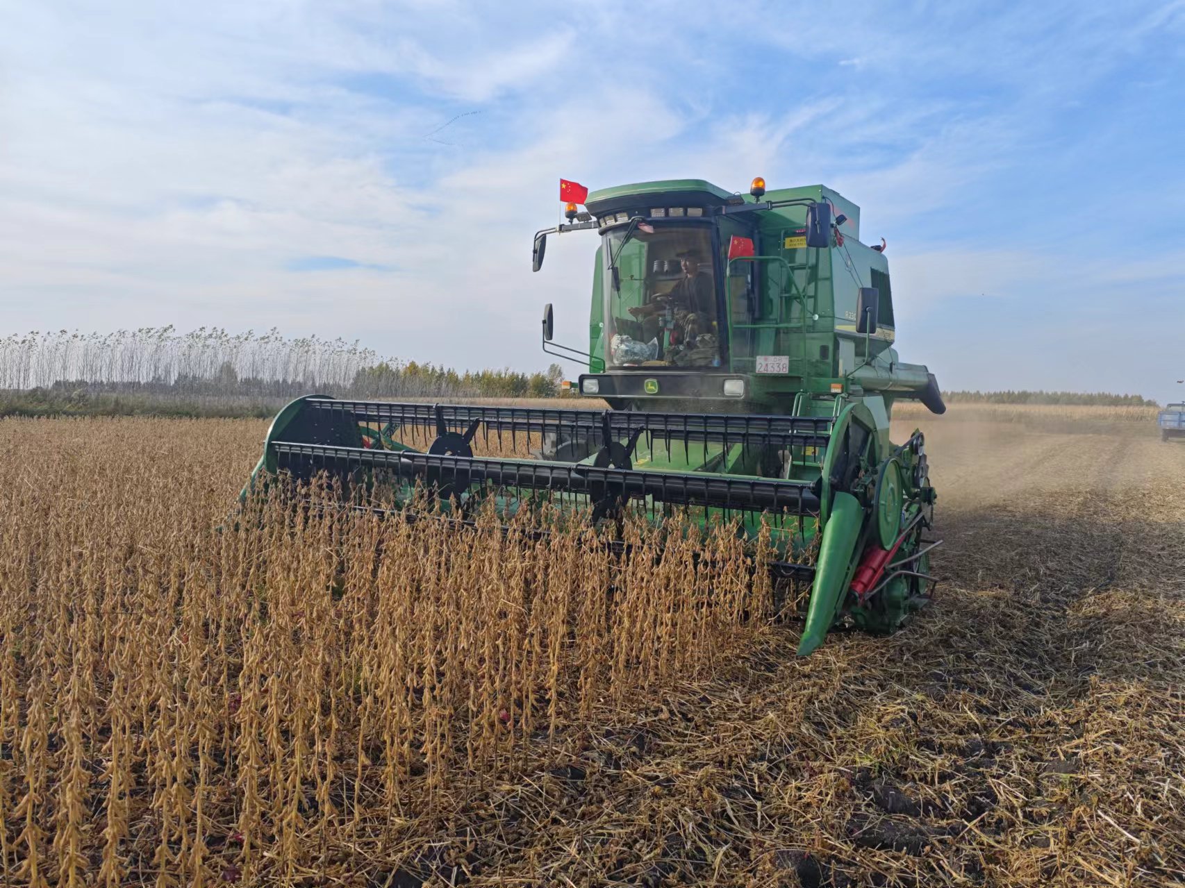 (一)收获时期 大豆完熟后及时收获,大豆收获期一般在9月下旬至10月中旬,大豆叶片全部脱落、籽粒归圆呈本品种色泽、含水量低于16%时,适宜进行机械收获。 (二)机械收获 1.如果收获前大豆田杂草较多,可人工拔除大草,也可提前一周使用化学除草剂除草,这样收获的大豆籽粒干净,外观品质好。 2.机收时应避开露水,在下午或夜间无露水时收获,防止籽粒粘附泥土,影响外观品质,风小阴天无露水,可夜间作业。 3.使用大豆联合收割机收获。 4.使用小麦联合收割机要注意以下事项。 ①原则上应更换专用割台。直接使用小麦割台易产生掉荚或割台托底铲土现象,大豆收割时割茬控制在4-6厘米内,就不会出现漏割,但过低收割时有时易出现集堆现象,这时可将割台的底部拖板进行调整以减少集堆现象。 ②合理调整拨禾轮转速,减少抛枝和炸荚损失。同时调整拨禾轮高度、转速及车辆收割速度,大豆收获的早期豆枝含水率较高,拨禾轮转速可适当高些;到收获后期豆枝干燥,易出现炸荚,拨禾轮转速要低些。 ③正确调整滚筒转速、脱粒凹板的间隙,控制未脱净损失。滚筒的转速一般调整至300-500转/分钟,脱粒凹板的间隙调整为前40毫米左右、后20毫米左右,但各型收割机及不同品种会有差异,以豆粒不裂开、脱粒干净为准,大豆的破碎率小于5%。 ④正确调整风量、筛片开度,控制夹带损失。风扇的风量尽量调大,即提高风扇转速,以不吹出豆粒为准,这样可以减少大豆的夹带损失以及提高粮食的清洁率。