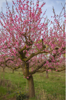 二、施肥与灌溉:萌芽前1~2周(2月下旬至3月上旬)施萌芽肥,以氮肥为主(如尿素),配合磷钾复合肥,幼树每株施尿素0.1~0.2kg,盛果期树施0.3~0.5kg,采用开沟施肥(深度15~20cm)后覆土浇水;萌芽前还需浇萌芽水,小水漫灌或滴灌促进萌芽整齐。花后(4月中下旬)追施花后肥,使用氮磷钾平衡肥并补充钙硼等微量元素,以促进幼果发育。灌溉需注意桃树根系怕旱怕涝,春旱地区及时浇水,低洼地做好排水防涝。