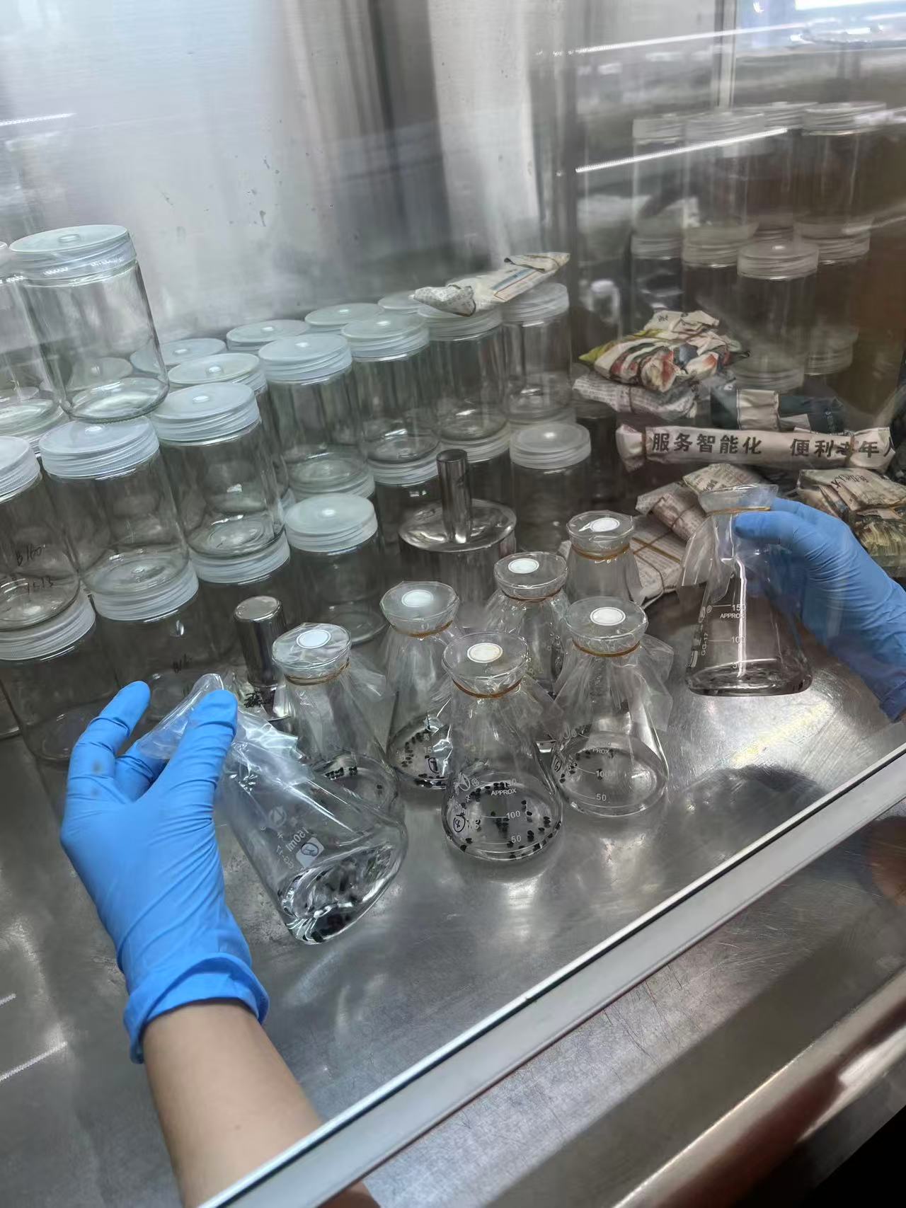1、蔬菜研究所科技人员对韭菜种子消毒后无菌入瓶开展组培育苗,核心是突破传统育苗弊端、实现实现优质品种的快速繁苗,保护良种特性,短时间内获得大量遗传性状一致的种苗,精准保留良种的高产、抗寒、抗病虫害、香味浓等优良特性,适合良种推广与产业化应用。
